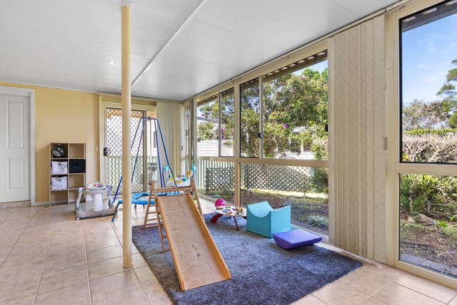 A fabulous opportunity presents itself here for the savvy buyer. High set with a northerly aspect and lake and ocean glimpses the home is positioned on a wide frontage block and located in one of the area's finest streets. This three bedroom home would make the ideal investment, weekender, Air BnB or a fabulous site to build a new two storey residence where the views would be enhanced substantially. Features include formal lounge and dining rooms, sunroom, covered entertaining area, large functional kitchen, sun drenched front verandah, abundant storage, garage, carport and a second toilet. Lakeside walking path and boat ramp approx 200mtrs and cafes, eateries, Hotel and stunning ocean beach a short stroll.