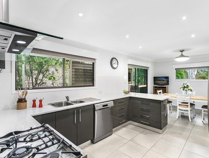 Downstairs, there is a teenagers' retreat featuring a lounge room and kitchenette, as well as in-law accommodation with its own lounge room and kitchenette.